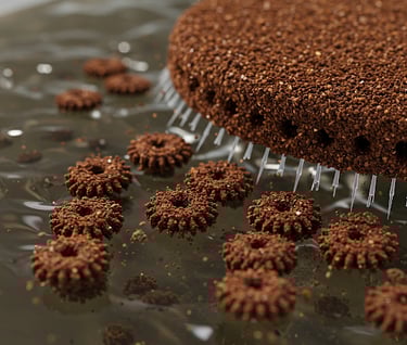 1. Oil and Microplastics Removal: The hydrophobic nature of coffee grounds allows them to attract and capture oil droplets and microplastics. The magnetic properties enable easy retrieval of the microbots after cleanup.