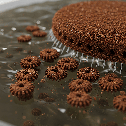 The coffee ground-based microbots leverage their unique properties to remove contaminants: