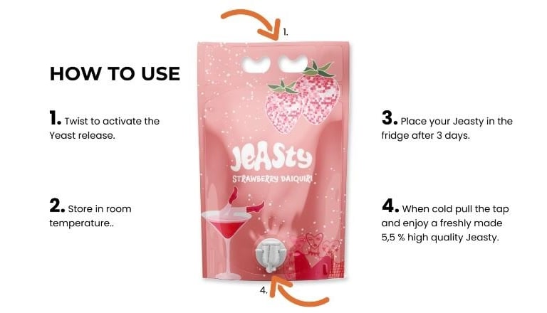 Home brewing has long been associated with complex equipment and time-intensive processes. Jeasty, a Norwegian startup, has developed a patent pending system that simplifies brewing beer, wine, or cider at home. This invention allows consumers to convert Jesty's drink into an alcoholic beverage and control the fermentation process conveniently, using a compact and user-friendly container. The system offers a seamless solution for creating drinkable beverages while eliminating the need for traditional brewing equipment.