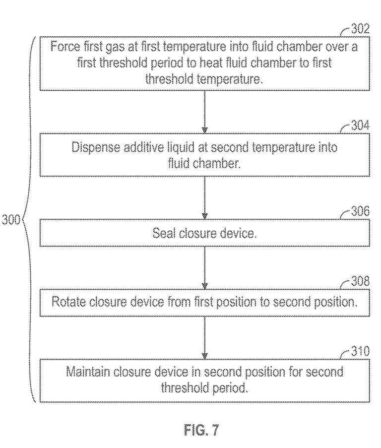 Stage 4 - Rotation for Additional Sterilization: The container is rotated (e.g., 180 degrees) to ensure the additive product comes into contact with the sealing member. The container is held in this position for a set period (e.g., 20 seconds) to sterilize the sealing member through contact with the hot additive product.