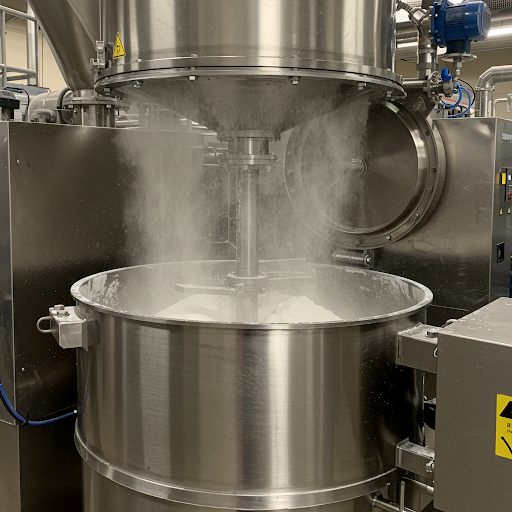 2. Injection and Flash Evaporation: The hot solution is injected into the vacuum mixer dryer, where it undergoes flash evaporation. The sudden pressure drop causes rapid water evaporation, leading to the formation of fine sugar particles that settle on the dry sugar template.