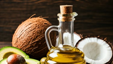 Sunflower oil and flaxseed oil are highlighted for their balanced fatty acid profiles. Sunflower oil contributes to partial coalescence (mimicking dairy fats), while flaxseed oil enhances viscosity and texture.