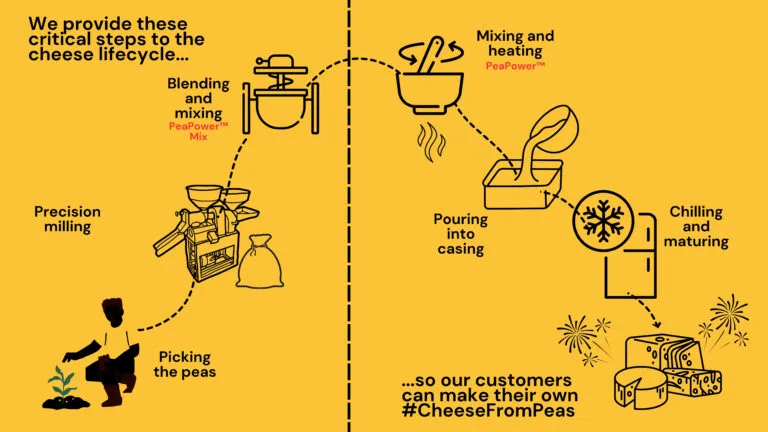The core of Good Pulse Foods’ innovation lies in the use of legume-derived ingredients to produce vegan cheese analogues (VCAs). These ingredients are derived from legumes such as yellow peas, chickpeas, and lentils, which are rich in protein, fiber, and starch. The method involves several key steps: